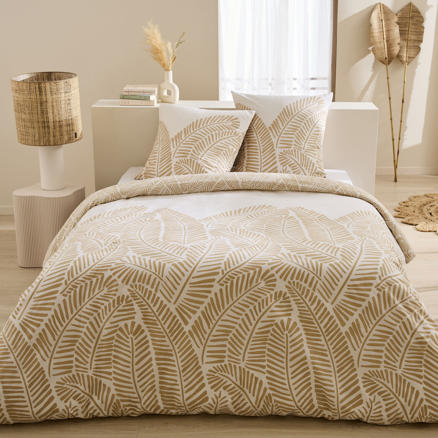 Parure housse de couette 260x240 Cm beige +2 taies d'oreiller 63x63 Cm