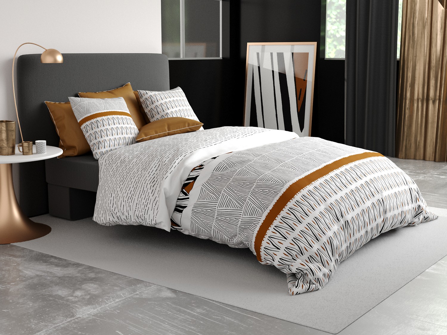 PARURE HOUSSE DE COUETTE 100% COTON 57 FILS URBANIK En tissu souple et résistant de qualité supérieure grâce à son tissage ultra serré (57 fils/cm²) constitué de fils de coton peigné. Plus le nombre de fils/cm² est élevé. plus le tissage est de qualité. Dimension : • Housse de couette 140 x 200 cm + 1 taie d'oreiller : 1 personne • Housse de couette 200 x 200 cm + 2 taies d'oreiller : 1-2 personnes • Housse de couette 240 x 220 cm + 2 taies d'oreiller : 2 personnes • Housse de couette 260 x 240 cm + 2 taies d'oreiller : 2 personnes Finition : Boutonnière dissimulés Conseil d'entretien : ENTRETIEN : Lavage à 40°c - Laver et repasser sur l'envers afin de protéger les couleurs Certification : Oeko-Tex® garantit que les articles testés et certifiés ne présentent pas de substances nocives substances pouvant nuire à la santé.