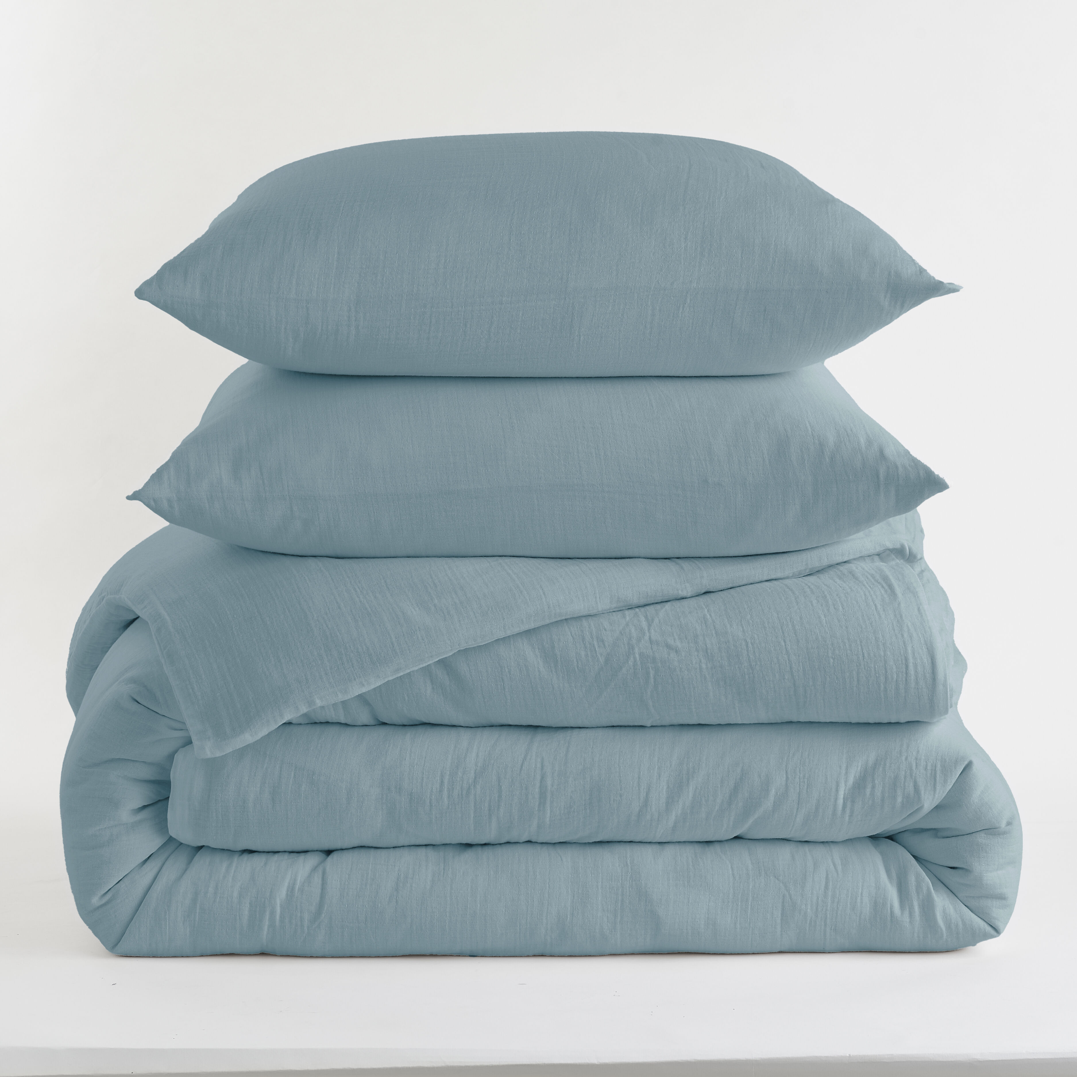 Parure housse de couette en gaze de coton 200x200 Cm + 2 taies d'oreiller 63x63 Cm vert gris TISSAIA