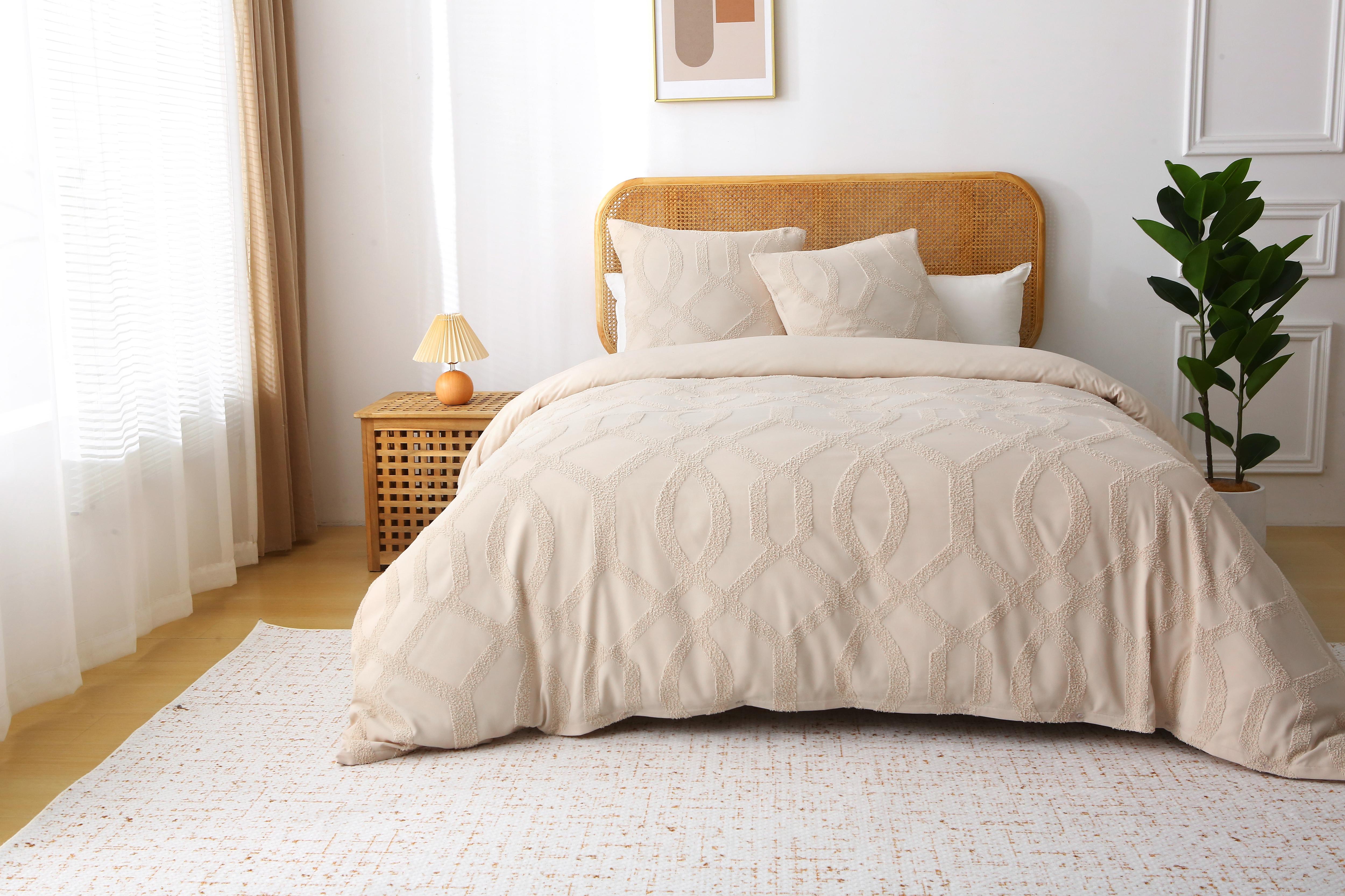 Tissaia Parure de Lit fantaisie tuftée avec une housse de couette 260x240cm et 2 taies d'oreiller 63x63cm - coloris beige geo- 100% Polyester
