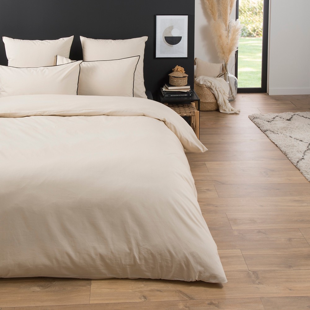 Parure housse de couette unie 200x200cm avec 2 taies d'oreillers 63x63cm Beige TISSAIA 100% coton