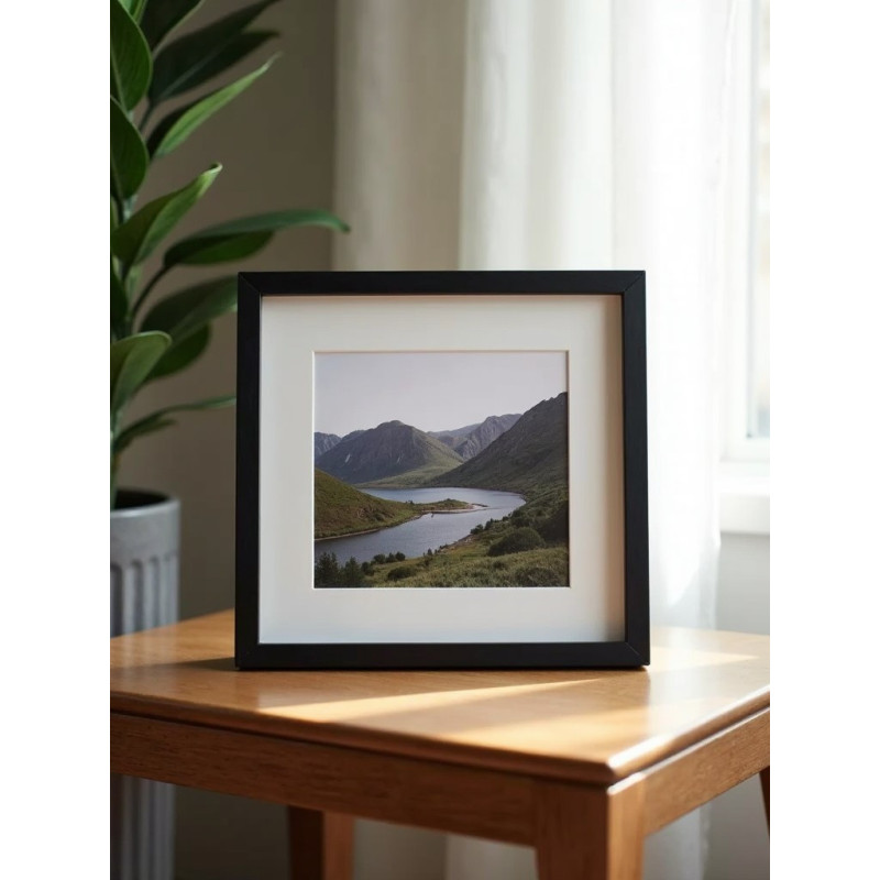 Le passe-partout mesure 15 x 15 cm (format extérieur), il permet d'accueillir une photo de dimensions 10 x 10 cm (format intérieur).