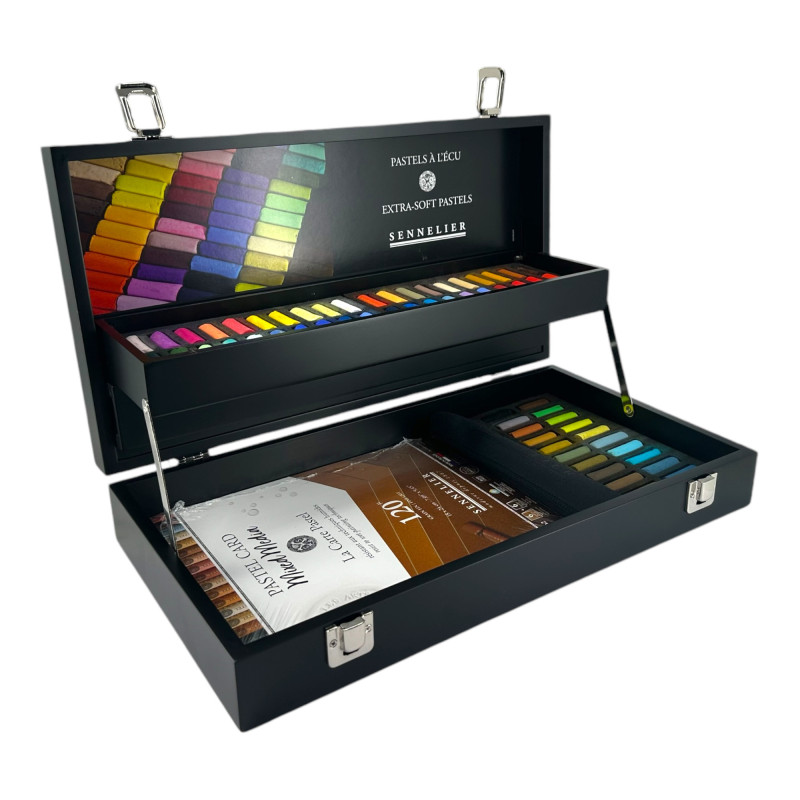 Pastels à l'écu - Extra tendres - Coffret bois - 60 teintes + 1 bloc Pastel Card - Sennelier
