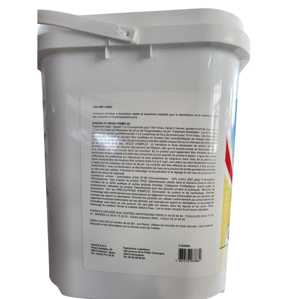 | Libellé | Pastilles chlore choc - 5 kg pastille 30 g |