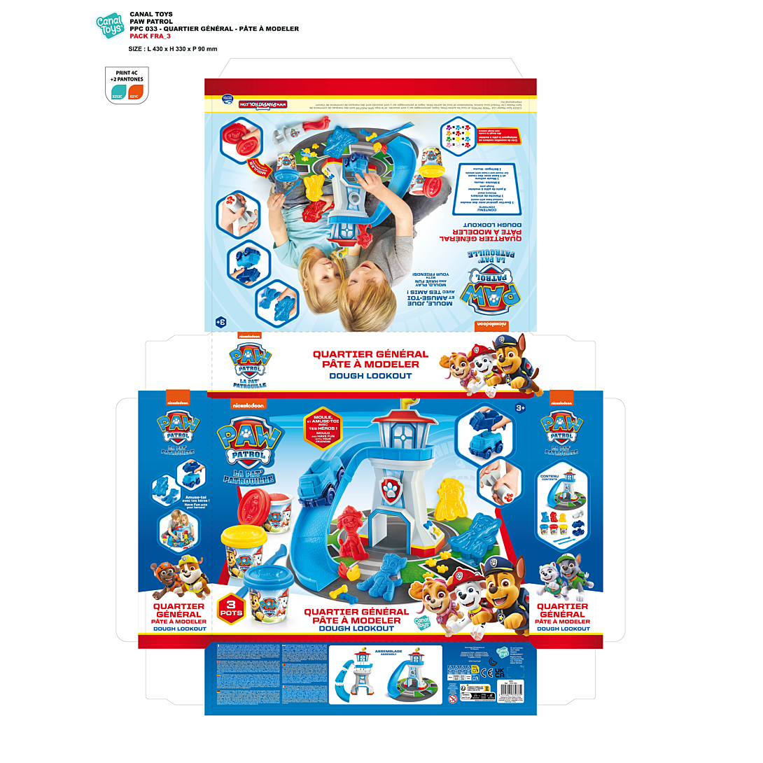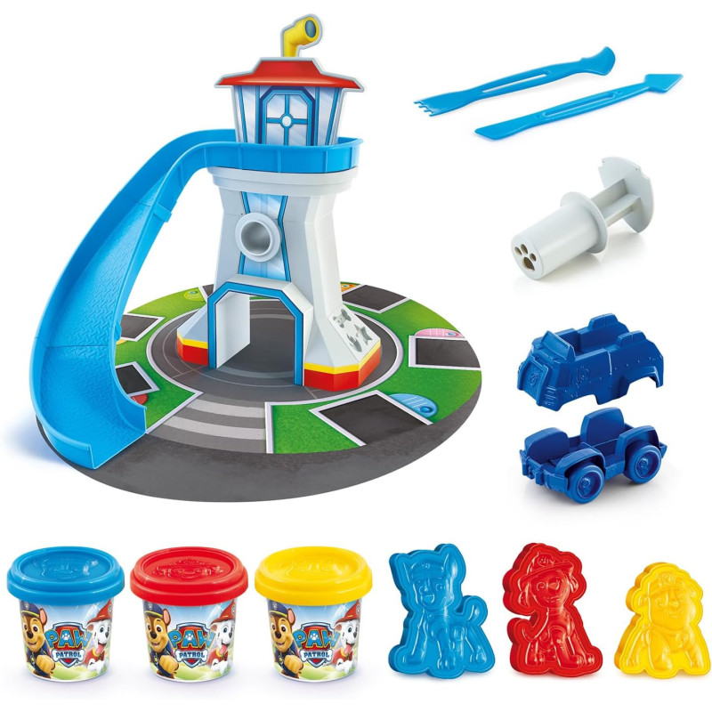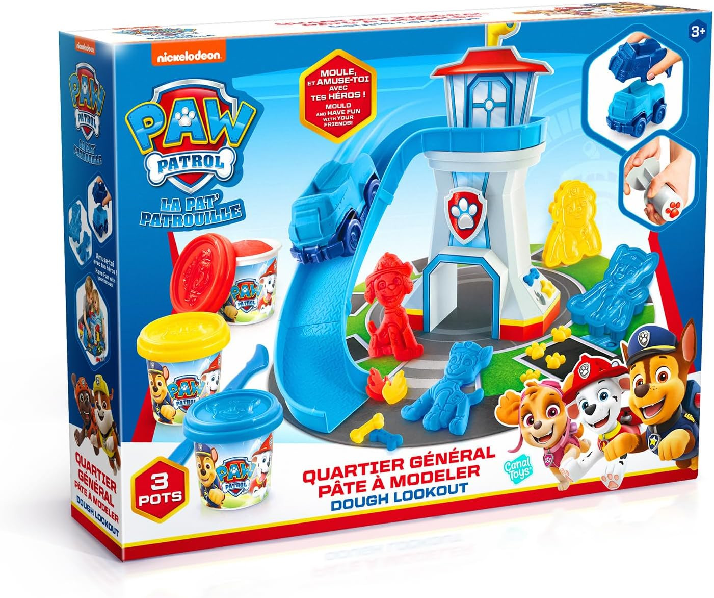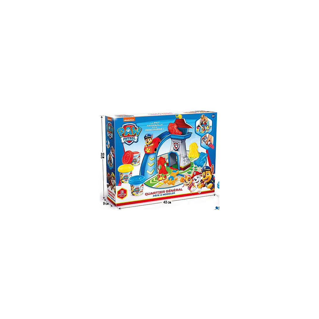 Découvre le quartier général de la Patrouille et amuse-toi à recréer tous les personnages et leurs véhicules en pâte à modeler. Donne leur vie dans ce super décors ! Inclus 4 pots de pâte à modeler.