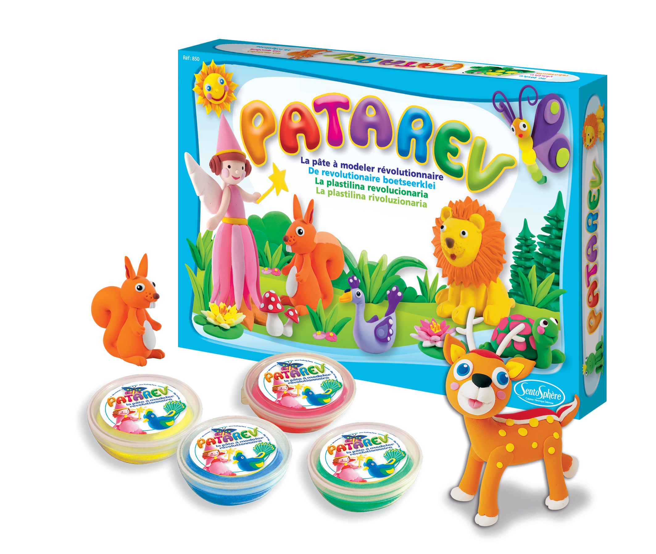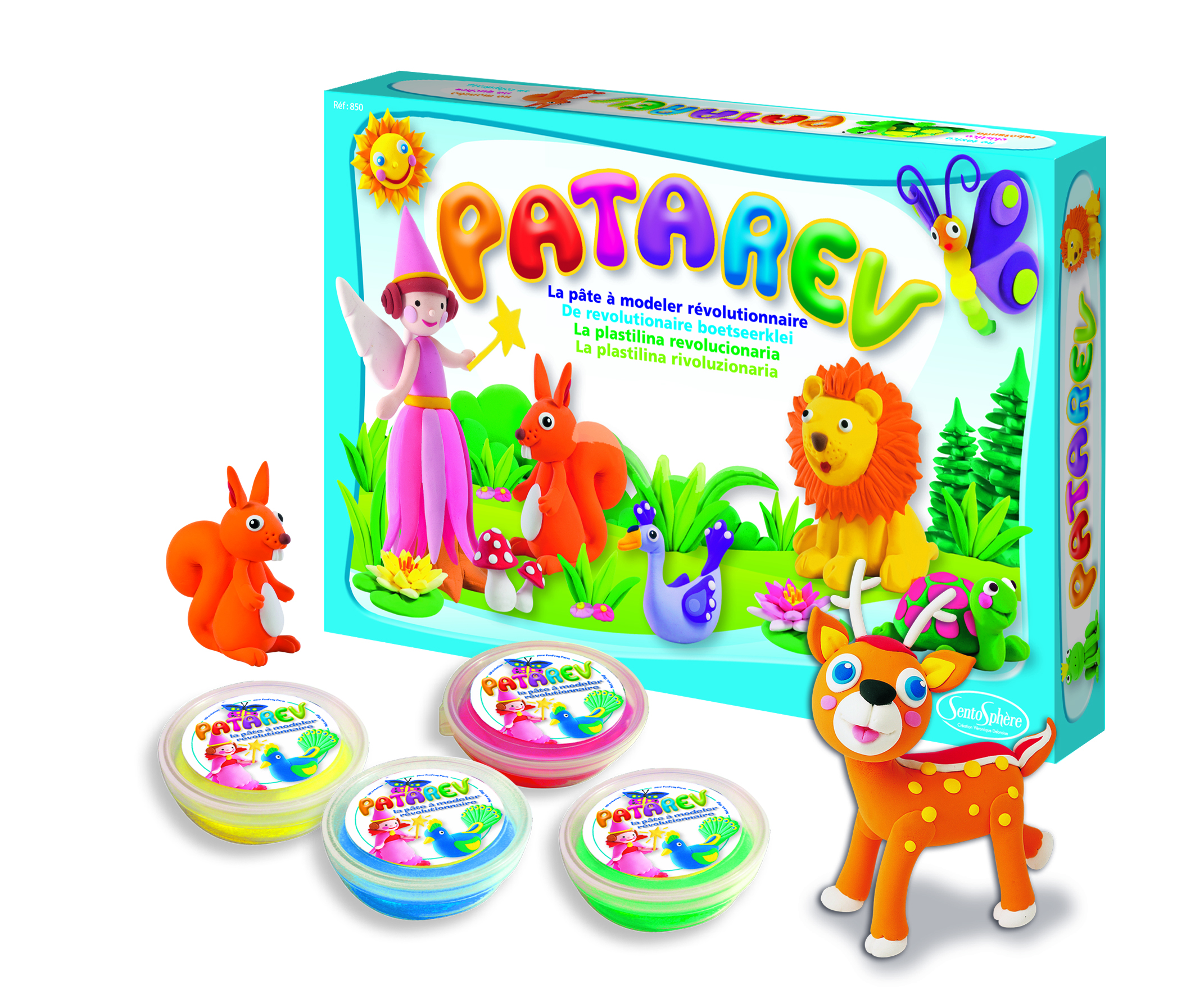 Patarev est la pâte à modeler dont tous les parents ont toujours rêvé : elle ne tache pas et ne colle ni aux doigts, ni aux tables. Elle est rebondissante, parfumable, réhydratable et les couleurs se mélangent parfaitement pour créer de très nombreuses couleurs vives. Sa texture légère et élastique offre un plaisir tactile qui facilite et encourage la création à tout âge.