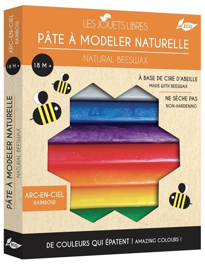 Une pâte à modeler biologique à base de véritable cire d'abeille naturelle et de colorants alimentaires (sans gluten). Elle ne sèche pas et ne tâche pas. Les couleurs peuvent se mélanger entre elles pour donner des couleurs étonnantes ! Un nouveau packaging avec une fermeture à pression pour pouvoir ranger la pâte à modeler !