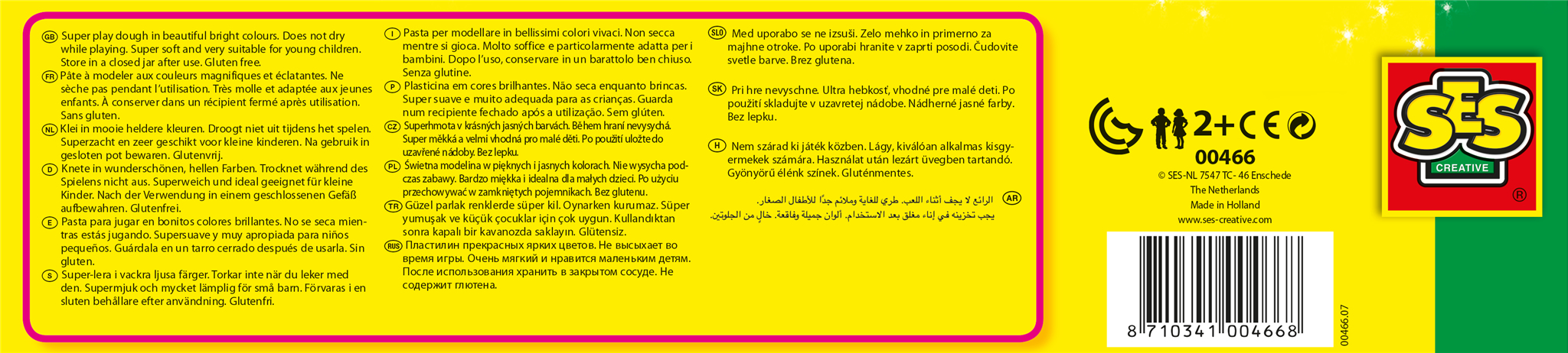 Réalise les plus belles créations en pâte à modeler avec cette jolie pâte à modeler pailletée SES. La pâte à modeler pailletée est belle et douce, et peut être utilisée encore et encore grâce à son emballage refermable. De nombreuses heures de jeu en perspective avec cette pâte à modeler ! La pâte à modeler s’utilise en toute sécurité ; elle est extrêmement salée, pour dissuader les enfants d’en manger.