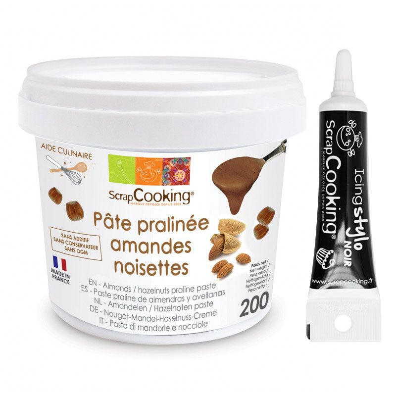 | Libellé | Pâte de praliné amandes-noisettes 200 g + Stylo de glaçage noir |