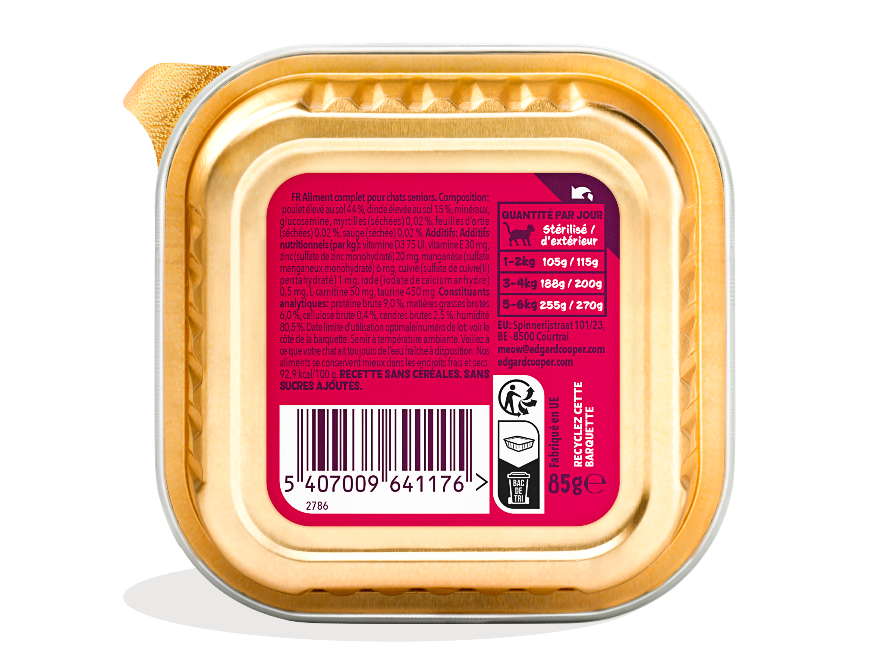 | Libellé | Pâté Edgard&Cooper Naturelle et sans céréales Chat Senior Dinde/Poulet 85g |
