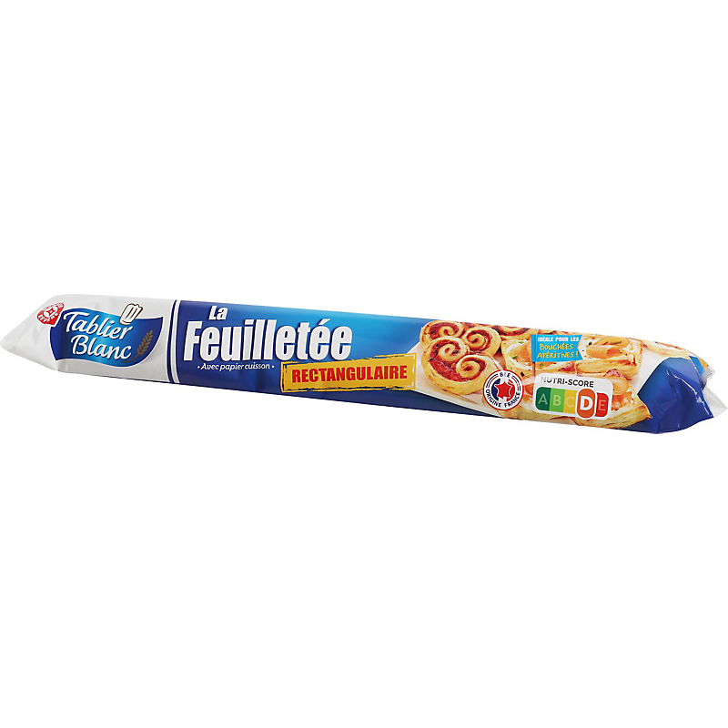 Pâte feuilletée rectangulaire avec matière grasse végétale prête à dérouler TABLIER BLANC
