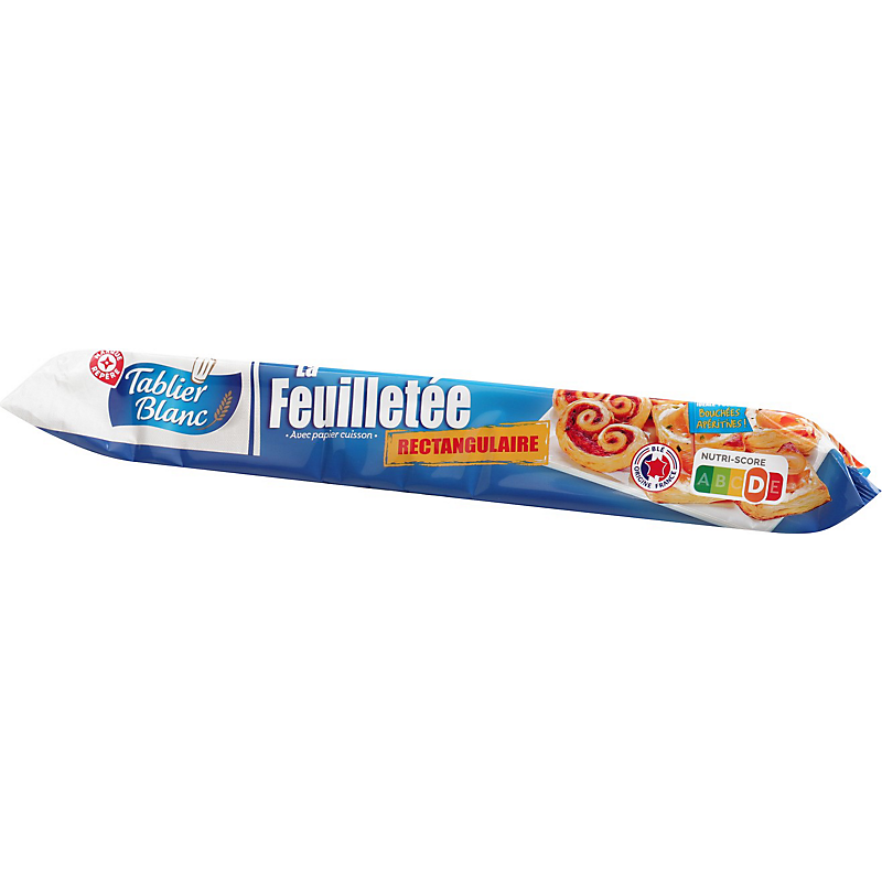 Pâte feuilletée rectangulaire avec matière grasse végétale prête à dérouler TABLIER BLANC
