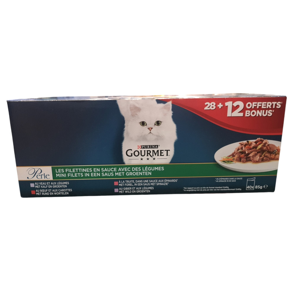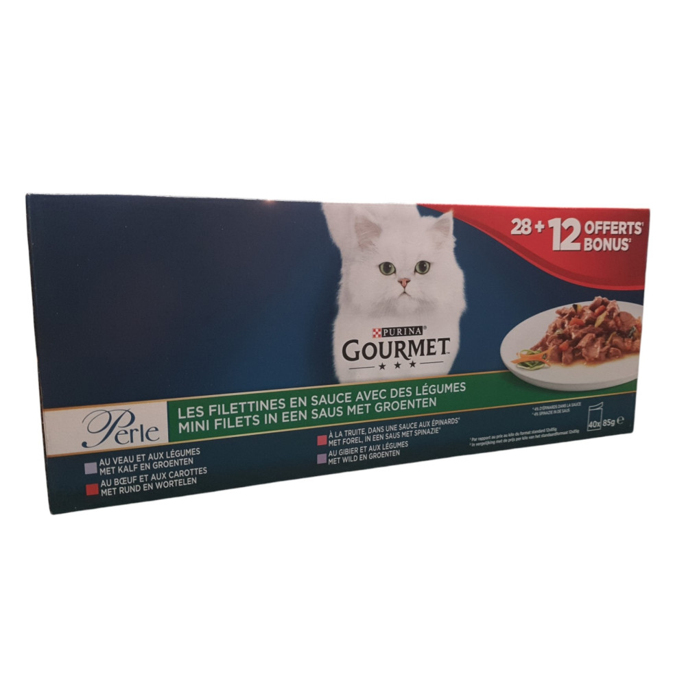 - GOURMET™ Perle mini Filets en sauce avec légumes, des créations simples et raffinées pour une expérience gustative irrésistible au quotidien. Toutes les recettes de GOURMET™ Perle mini Filets en sauce avec légumes sont préparées avec des ingrédients de haute qualité et ne contiennent pas de colorants ajoutés, d'arômes artificiels ajoutés et de conservateurs artificiels ajoutés.