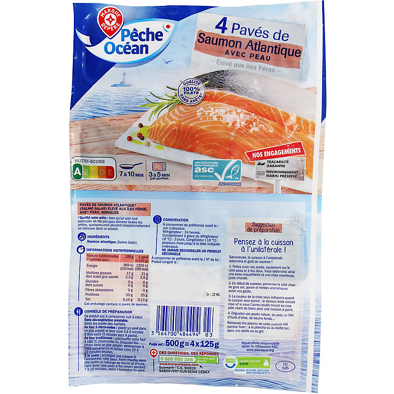 Pavés saumon atlantique x4 ASC - 500g - PECHE OCEAN
