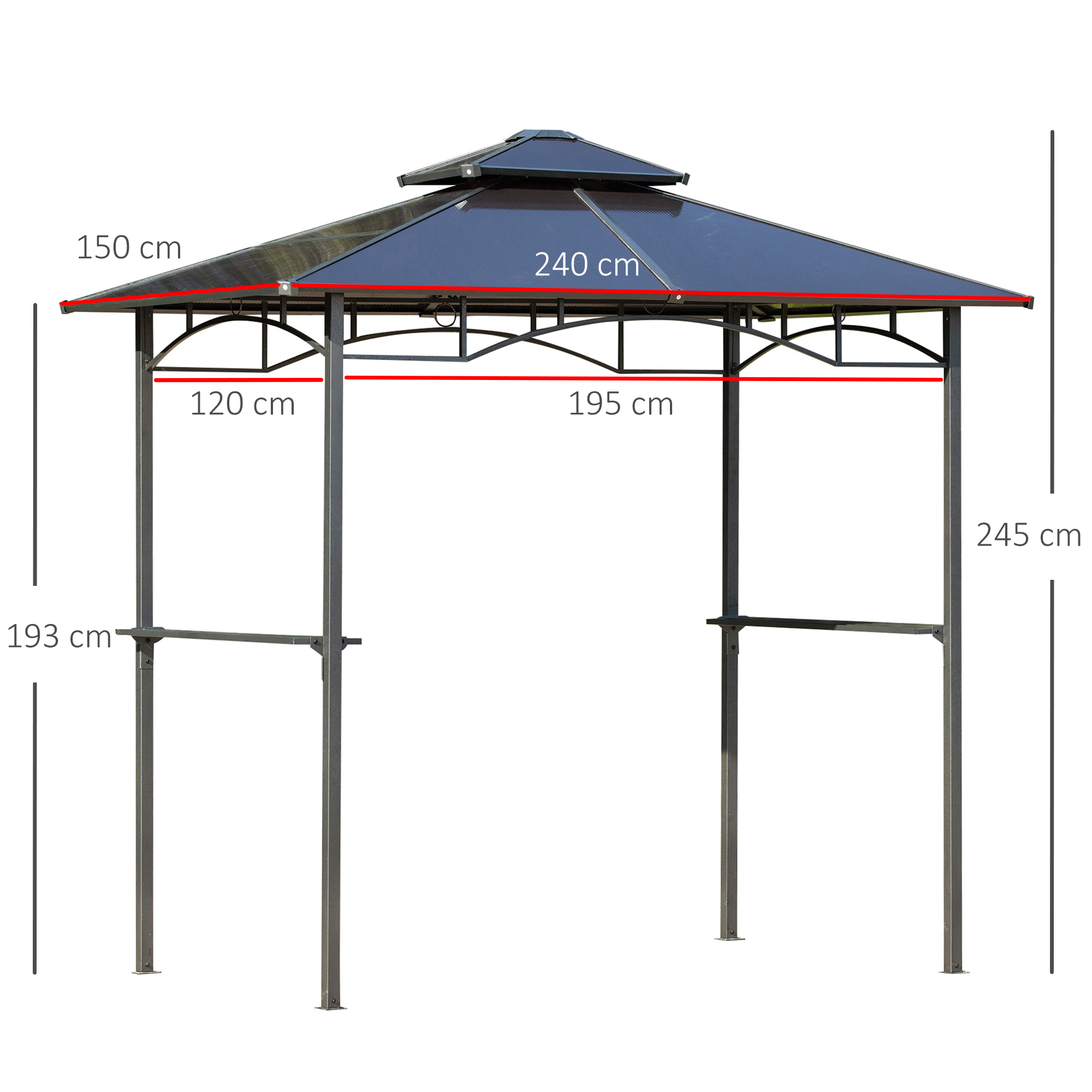 | Libellé | Pavillon jardin - abri barbecue - steakhouse 2 étagères - dim. 2,4L x 1,5l x 2,45H m - alu. métal noir toit polycarbonate |