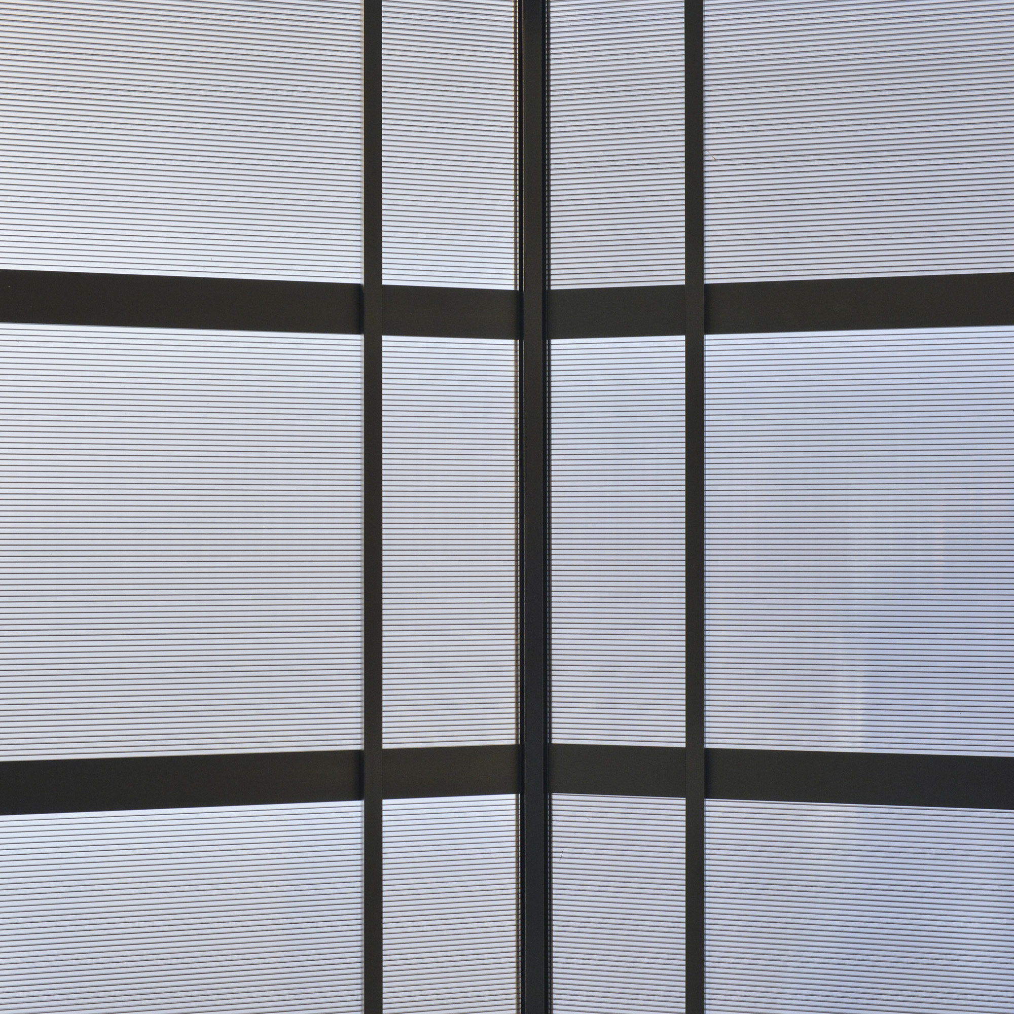 - Conception, fabrication de qualité en aluminium, métal (structure) et polycarbonate (toit) : usage pérenne en toute sécurité