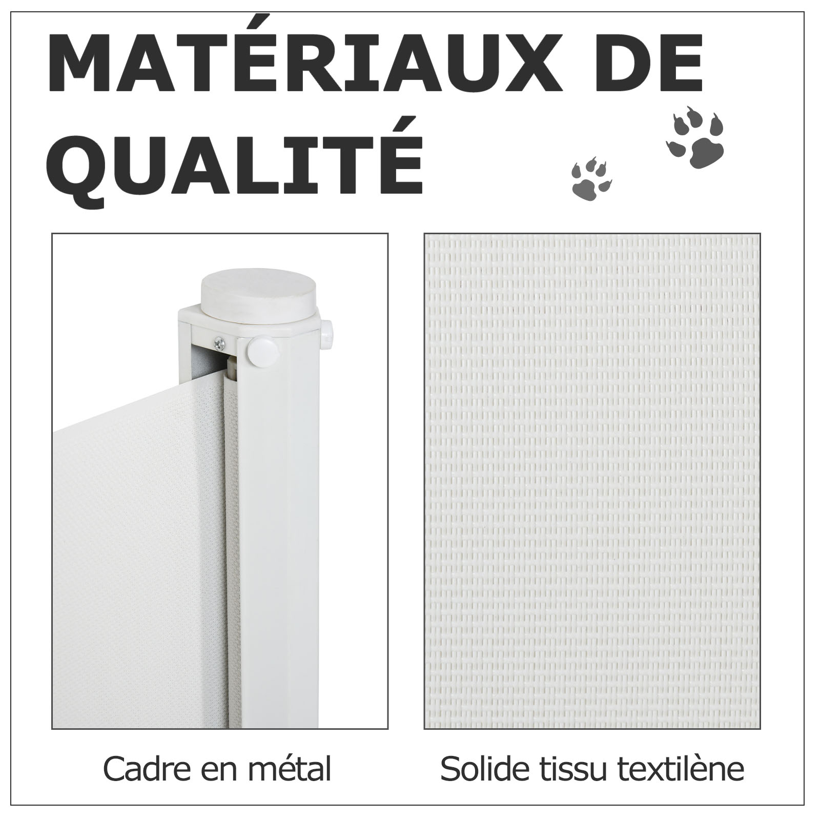 PawHut Barrière de sécurité barrière animaux rétractable automatique 1,15L x 0,83H m teslin métal blanc