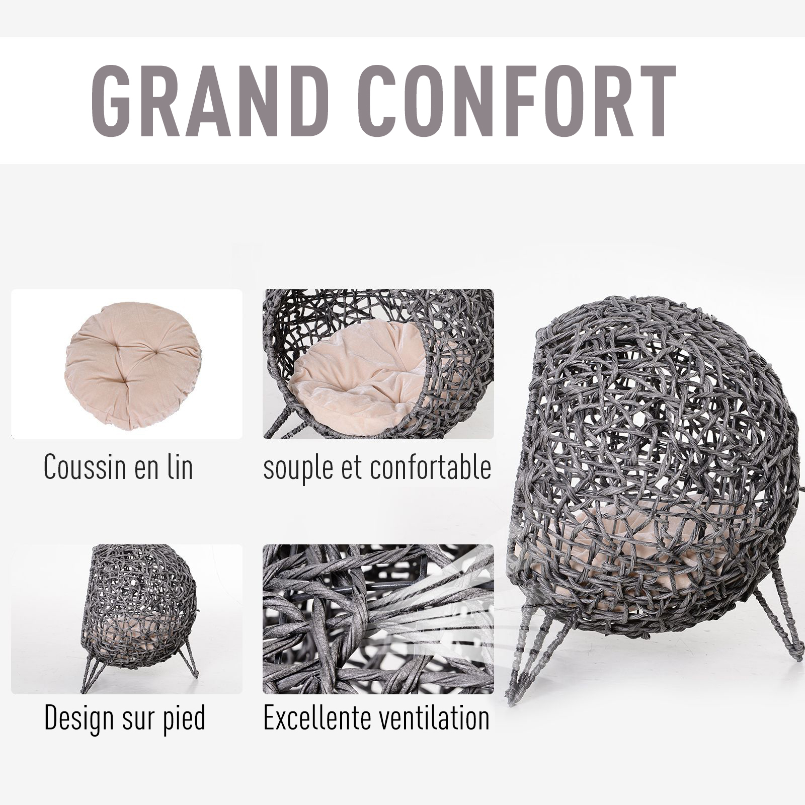Libellé PawHut Panier chat lit chat cosy grand confort dim. diam. 52 x 58H cm coussin moelleux beige inclus résine tressée imitation rotin gris