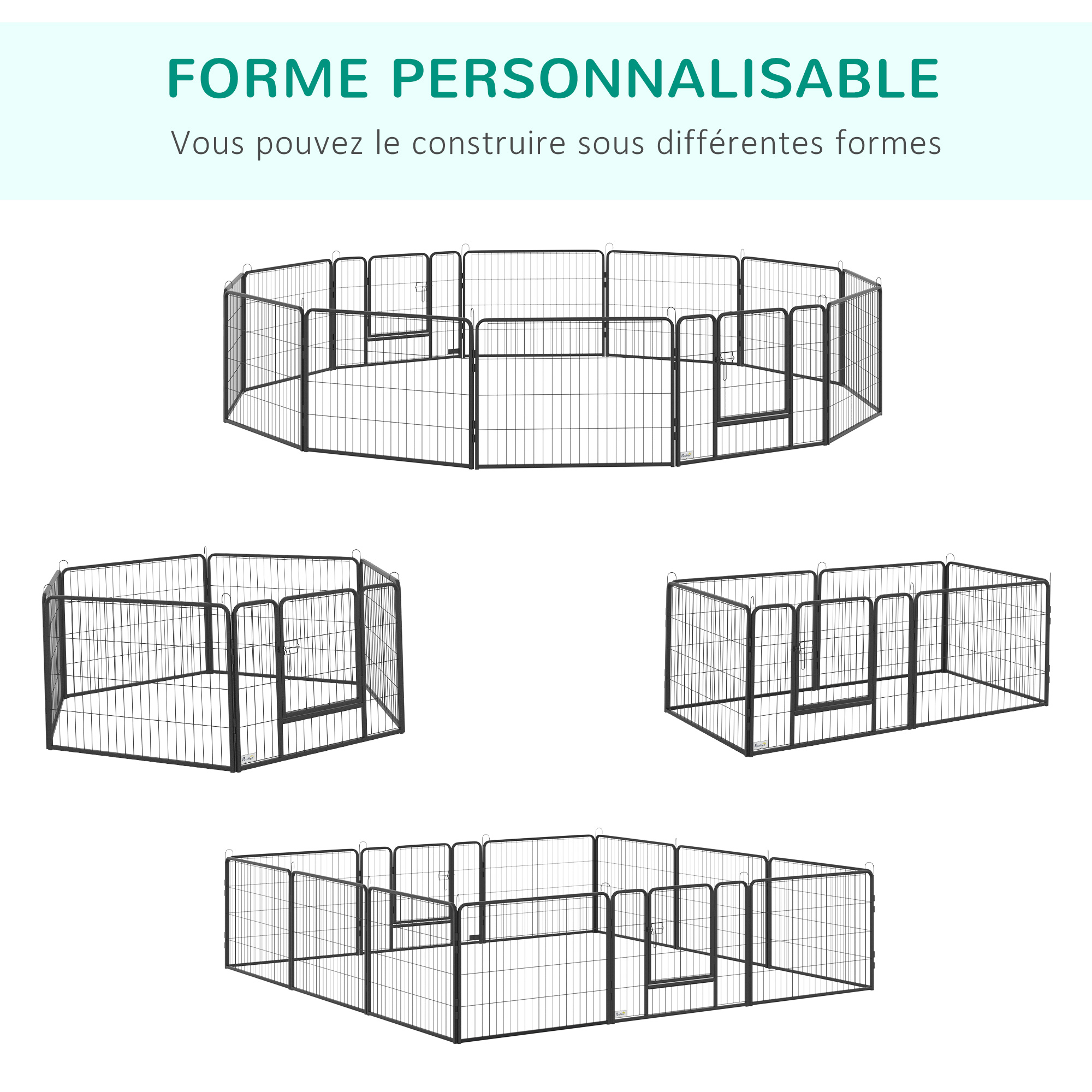 - Parc enclos modulable 12 panneaux : forme octogonale, carrée, rectangulaire, etc.
