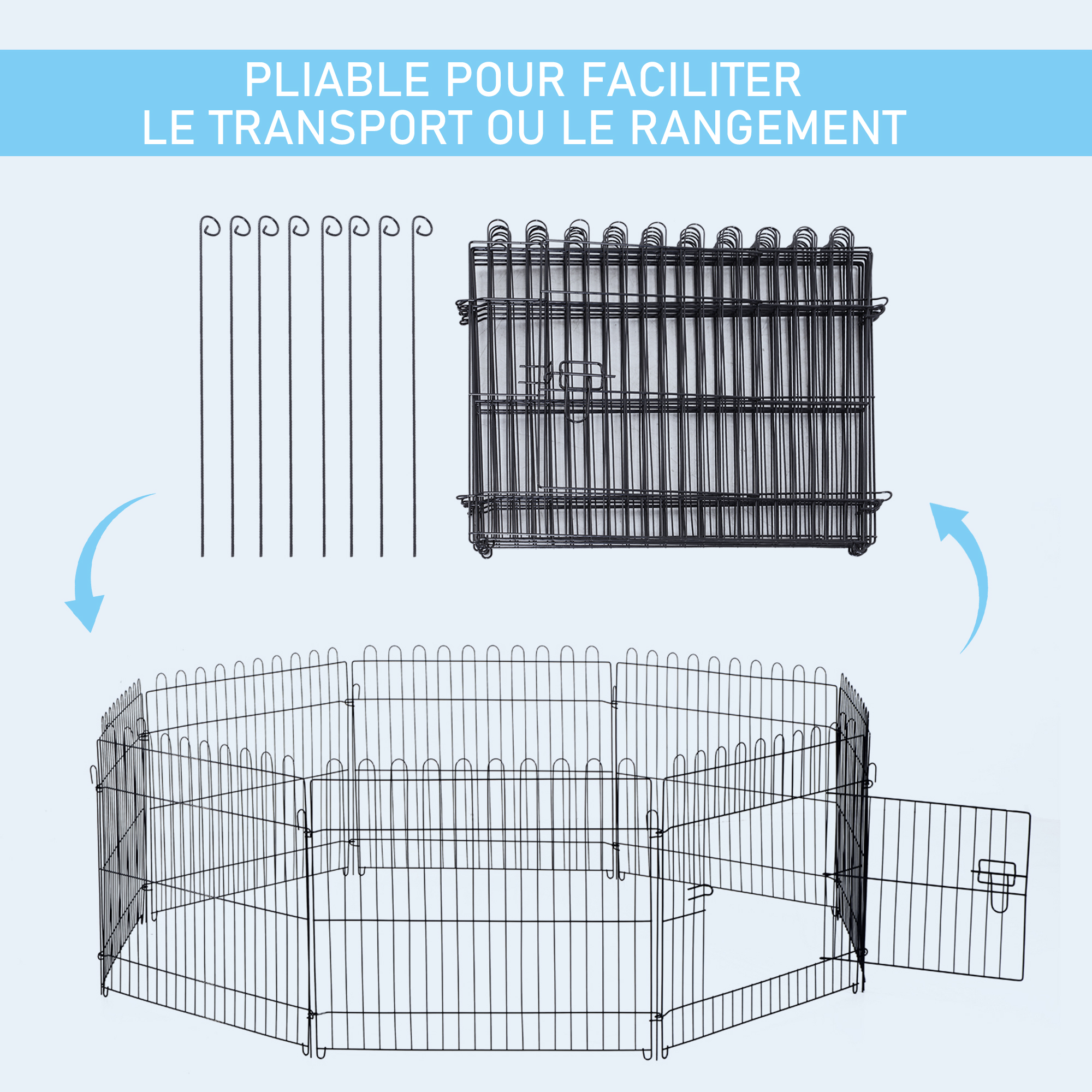 PawHut Parc enclos pour chiens chiots animaux domestiques diamètre 158 cm 8 panneaux 71L x 61H cm noir