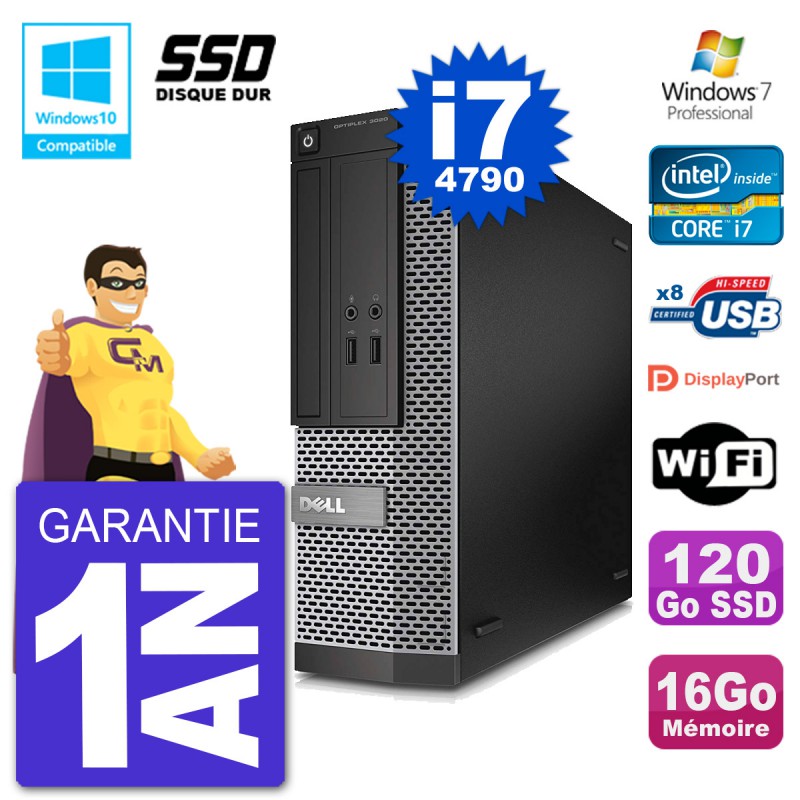 PC Dell 3020 SFF Intel i7-4790 RAM 16Go SSD 120Go Graveur DVD Wifi W7