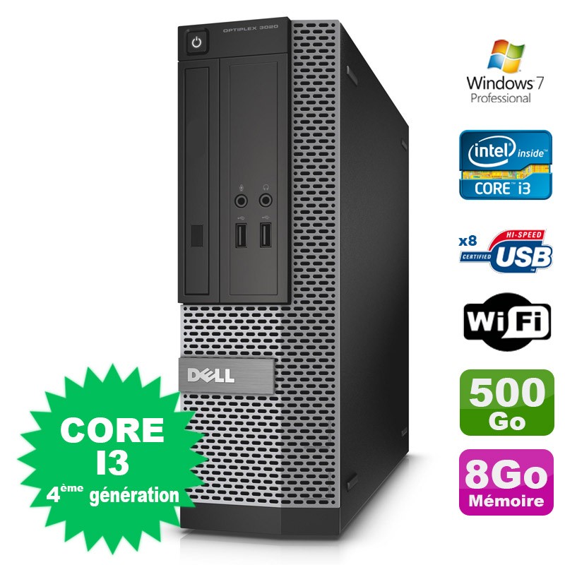 PC Dell Optiplex 3020 SFF I3-4130 3.4GHz 8Go Disque 500Go DVD Wifi W7