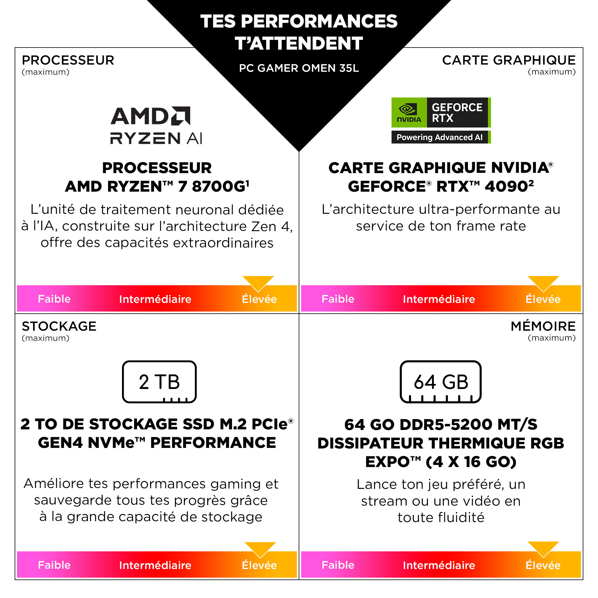 | Libellé | PC Fixe Gamer HP OMEN GT16-0475nf / AMD Ryzen 7 8700F / 32 Go SDRAM / 2 To SSD / RTX 5080 / Windows 11 |