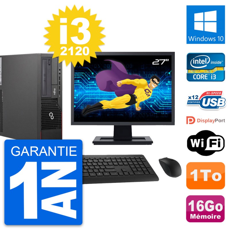 | Libellé | PC Fujitsu E700 DT Ecran 27" Intel i3-2120 RAM 16Go Disque 1To Windows 10 Wifi |