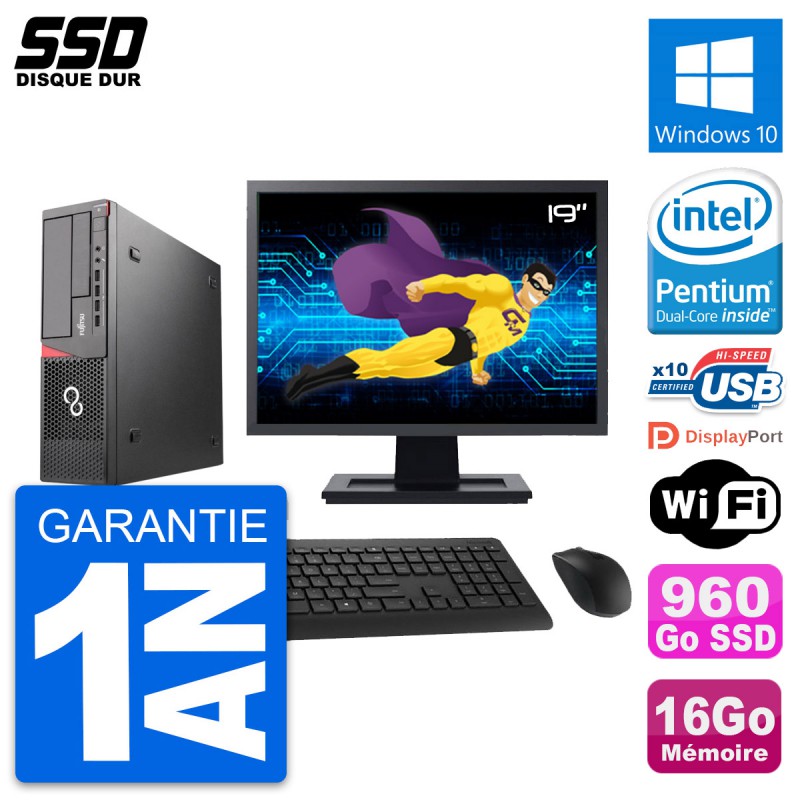 PC Fujitsu E720 E85+ DT Ecran 19" Intel G3220 RAM 16Go SSD 960Go Windows 10 Wifi