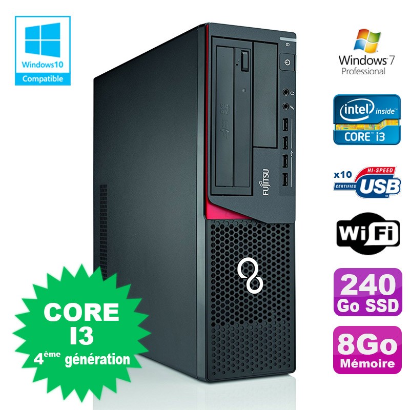 PC Fujitsu E720 E85+ SFF Core I3-4130 3.4GHz 8Go 240Go Graveur WIFI W7