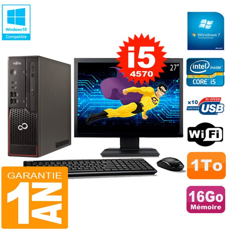 PC Fujitsu Esprimo C720 SFF Ecran 27" Core I5-4570 16Go 1To Wifi W7