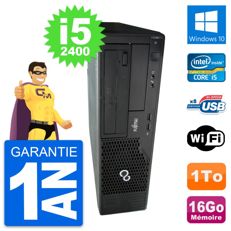 | Libellé | PC Fujitsu Esprimo E500 DT Intel i5-2400 RAM 16Go Disque Dur 1To Windows 10 Wifi |