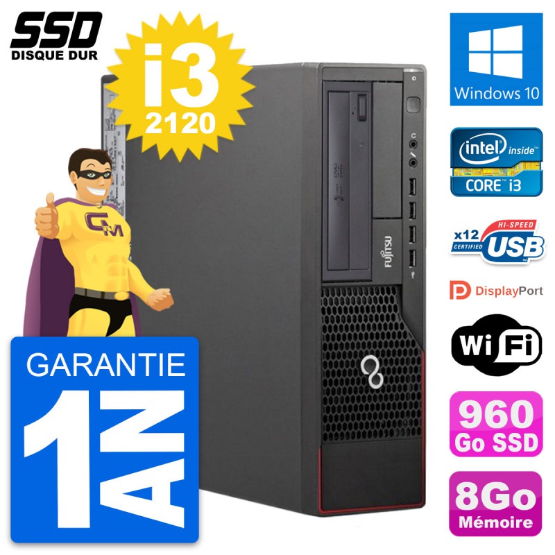 PC Fujitsu Esprimo E700 E90+ DT Intel i3-2120 RAM 8Go SSD 960Go Windows 10 Wifi