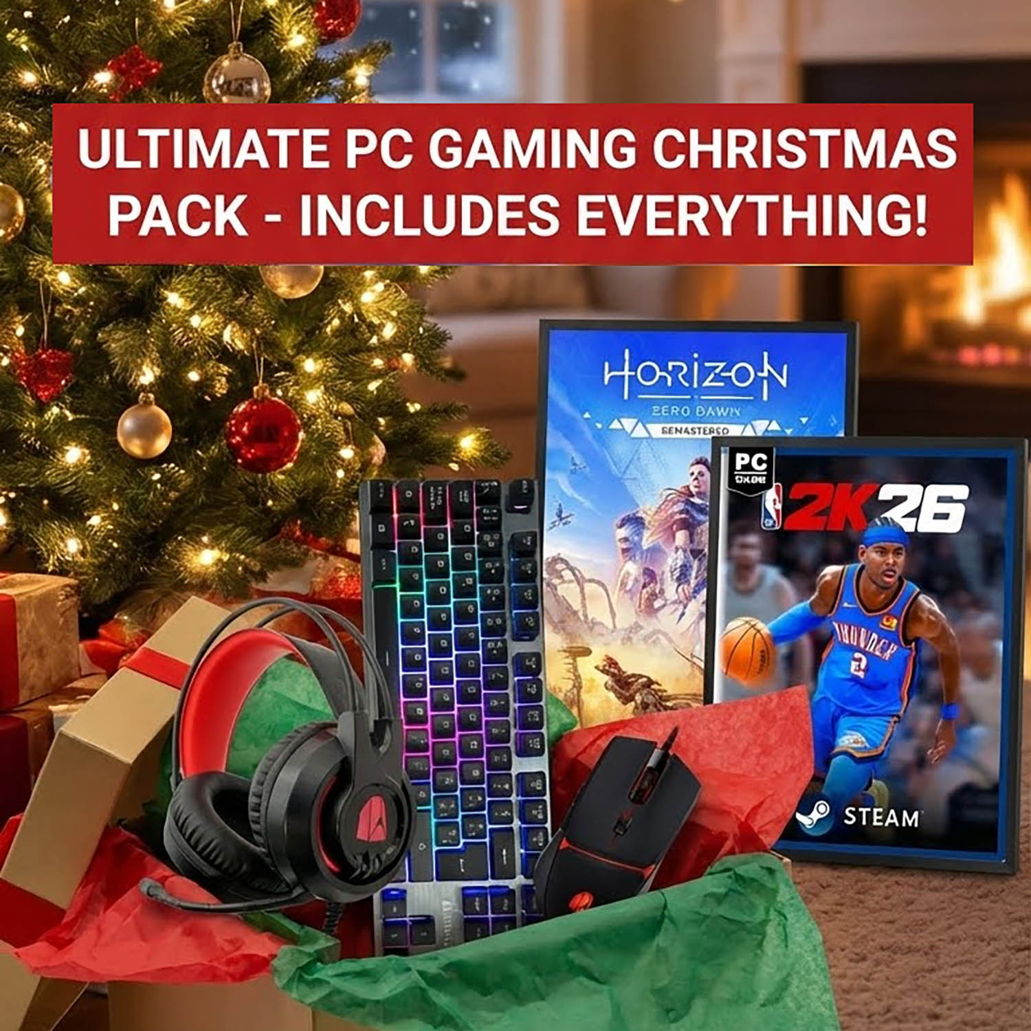 Grâce à notre pack de Noël exclusif, actif uniquement pendant la période de Noël, ta commande inclut deux jeux AAA, notre clavier et souris gaming NKM1000S et notre casque NH1000, pour une valeur de plus de 180 euros. Tu pourras combiner les genres, en choisissant par exemple un monde ouvert comme Red Dead Redemption 2, un RPG comme Elden Ring, un jeu de tir narratif comme Cyberpunk 2077: Ultimate Edition, un jeu de conduite comme Forza Horizon 5, une simulation de gestion comme Planet Zoo: Deluxe Edition, un jeu de sport comme NBA 2K26, un jeu de combat comme TEKKEN 8, un jeu d’horreur de survie comme Silent Hill 2 ou une expérience coopérative comme It Takes Two. Nous te contacterons depuis Nitropc pour que tu choisisses les jeux.