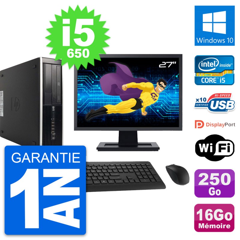PC HP 8100 SFF Ecran 27" Core i5-650 RAM 16Go Disque 250Go Windows 10 Wifi