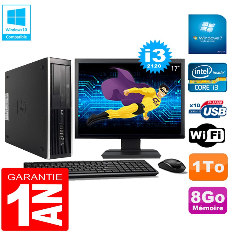 PC HP Compaq Pro 6300 SFF I3-2120 8Go 1To Graveur DVD Wifi W7 Ecran 17"