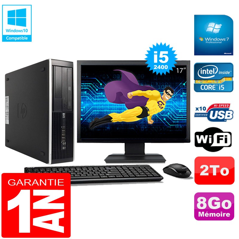 PC HP Compaq Pro 6300 SFF I5-2400 8Go 2To Graveur DVD Wifi W7 Ecran 17"