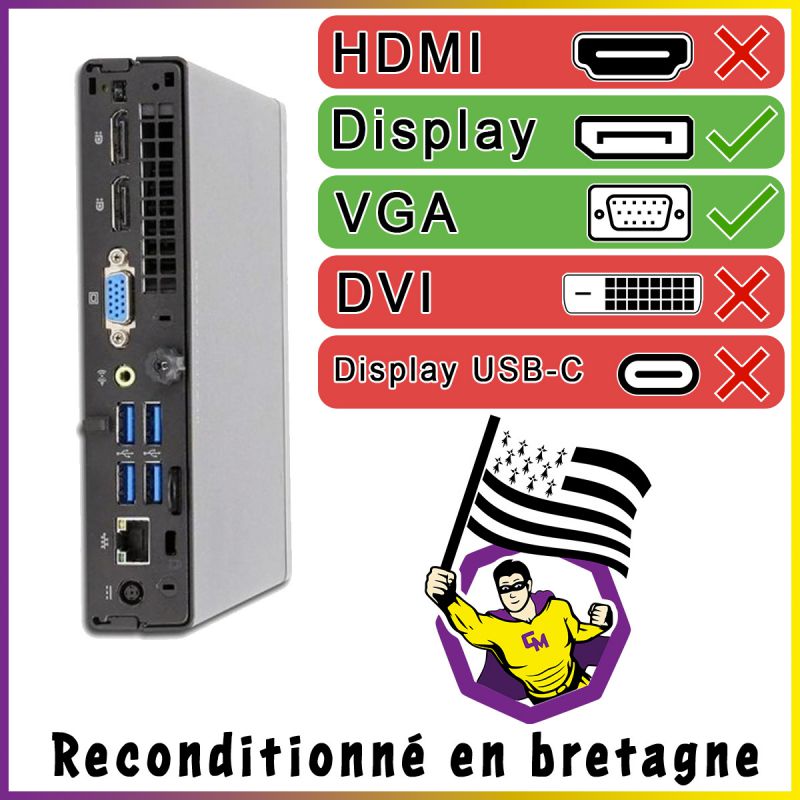 PC HP EliteDesk 800 G1 DM Intel I5-4570T RAM 8Go SDD 240Go W11 Wifi