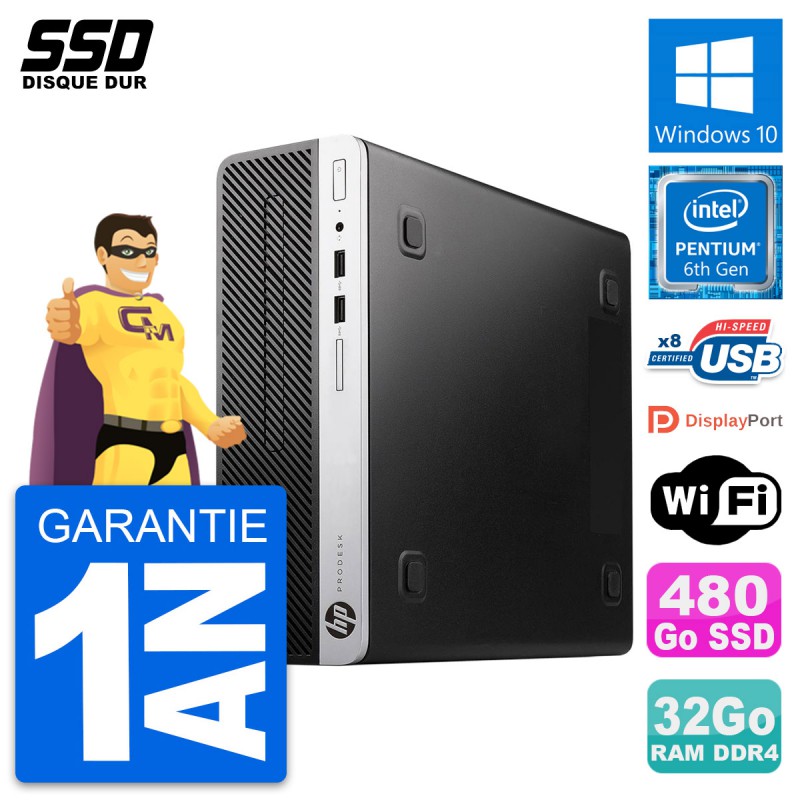 PC HP ProDesk 400 G4 SFF Intel Pentium G4400 RAM 32Go SSD 480Go Windows 10 Wifi