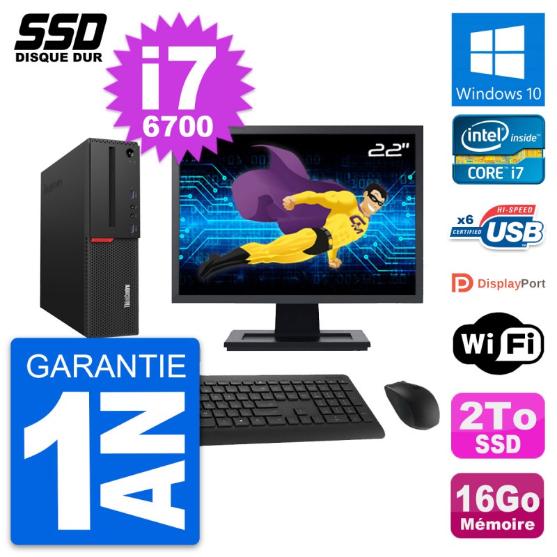 PC Lenovo M700 SFF Ecran 22" Intel Core i7-6700 RAM 16Go SSD 2To Windows 10 Wifi