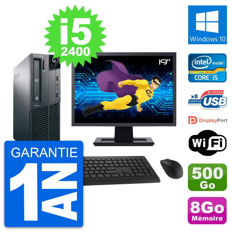 PC Lenovo M81 SFF Ecran 19" Intel i5-2400 RAM 8Go Disque 500Go Windows 10 Wifi