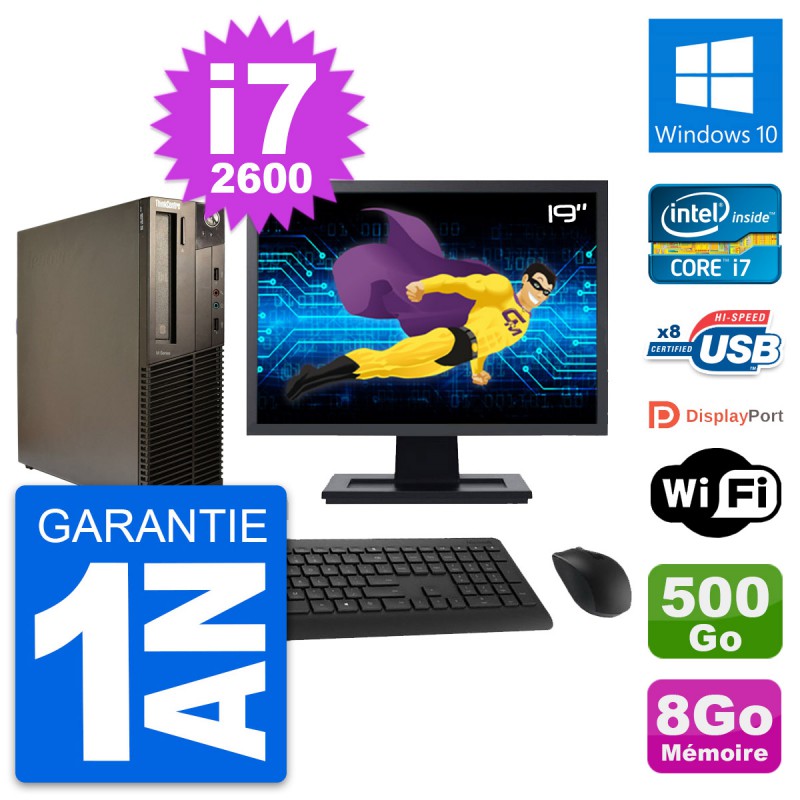 Libellé PC Lenovo M82 SFF Ecran 19" Intel i7-2600 RAM 8Go Disque 500Go Windows 10 Wifi