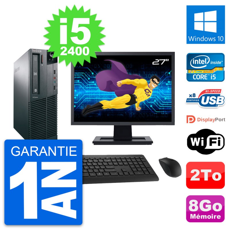 PC Lenovo M82 SFF Ecran 27" Intel i5-2400 RAM 8Go Disque Dur 2To Windows 10 Wifi