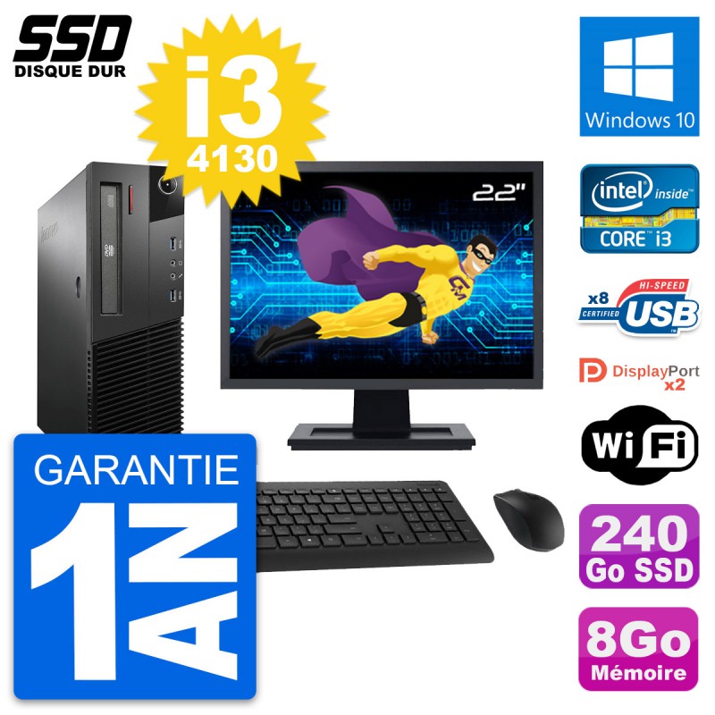 PC Lenovo M93p SFF Ecran 22" Intel i3-4130 RAM 8Go SSD 240Go Windows 10 Wifi