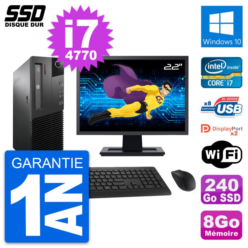 PC Lenovo M93p SFF Ecran 22" Intel i7-4770 RAM 8Go SSD 240Go Windows 10 Wifi