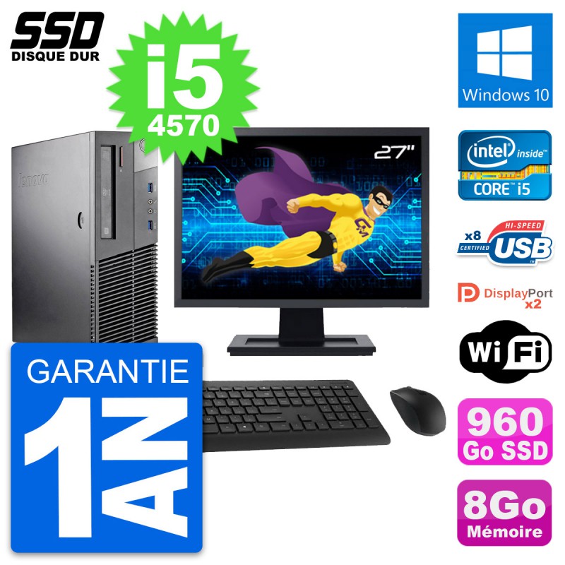 PC Lenovo M93p SFF Ecran 27" Intel i5-4570 RAM 8Go SSD 960Go Windows 10 Wifi