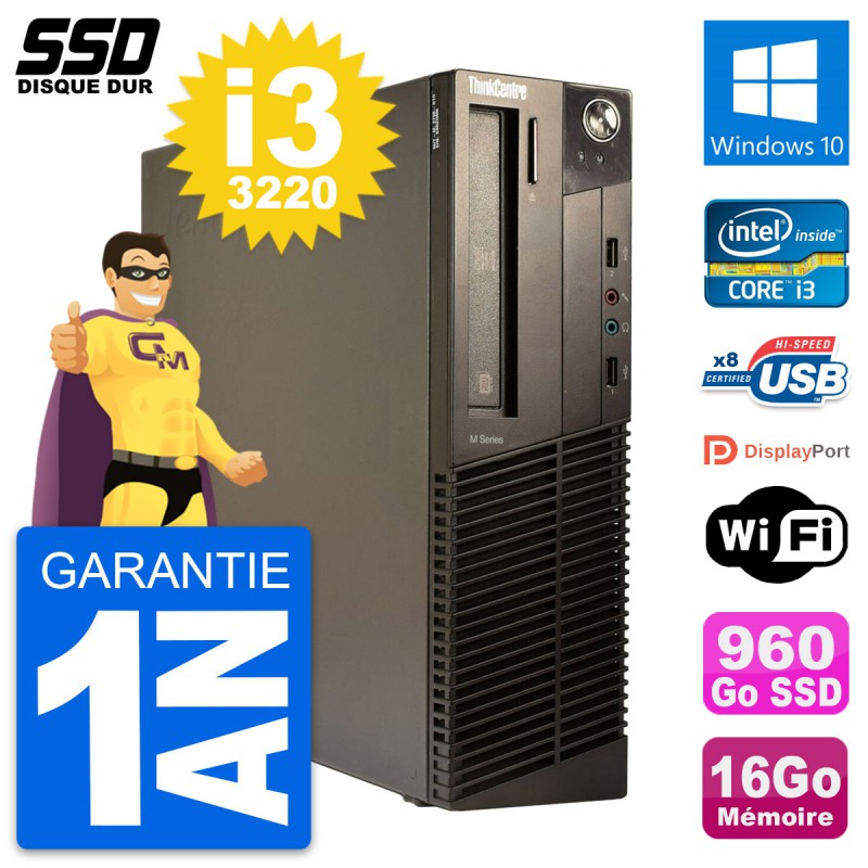 PC Lenovo ThinkCentre M82 SFF Intel i3-3220 RAM 16Go SSD 960Go Windows 10 Wifi