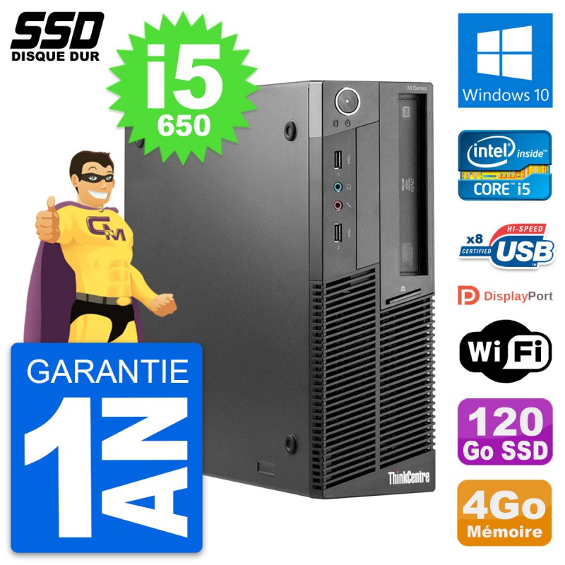 PC Lenovo ThinkCentre M90 SFF Intel i5-650 RAM 4Go SSD 120Go Windows 10 Wifi