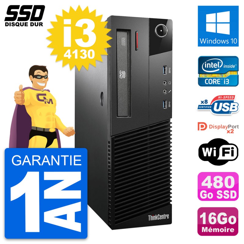 PC Lenovo ThinkCentre M93p SFF Intel i3-4130 RAM 16Go SSD 480Go Windows 10 Wifi