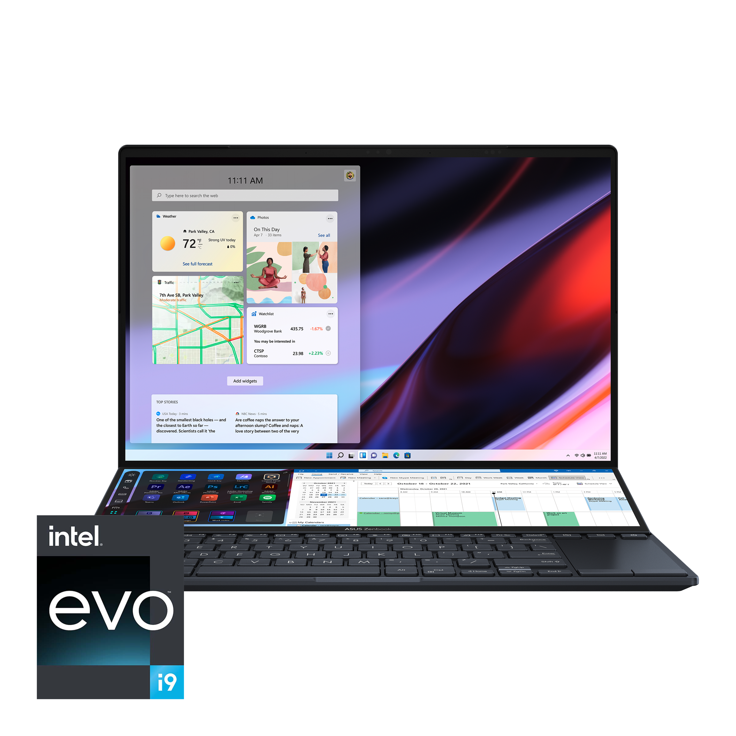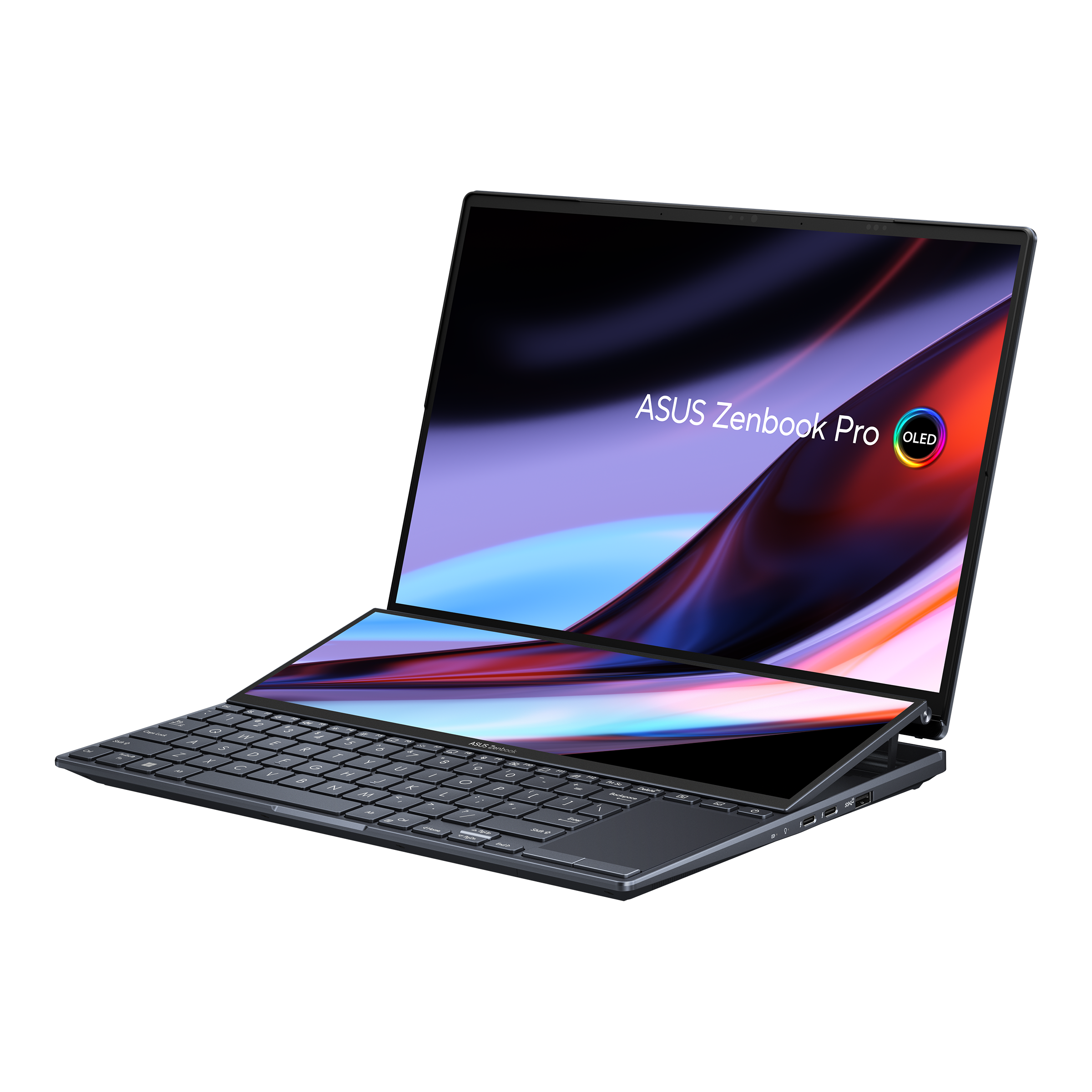 ASUS ZenBook Pro 14 Duo OLED UX8402ZE-M3134W. Type de produit: Ordinateur portable, Format: Clapet. Famille de processeur: Intel® Core™ i7, Modèle de processeur: i7-12700H, Fréquence du processeur: 2,3 GHz. Taille de l'écran: 36,8 cm (14.5"), Type HD: 2.8K, Résolution de l'écran: 2880 x 1800 pixels, Écran tactile. Mémoire interne: 32 Go, Type de mémoire interne: LPDDR5-SDRAM. Capacité totale de stockage: 1000 Go, Supports de stockage: SSD. Système d'exploitation installé: Windows 11 Home. Couleur du produit: Noir
